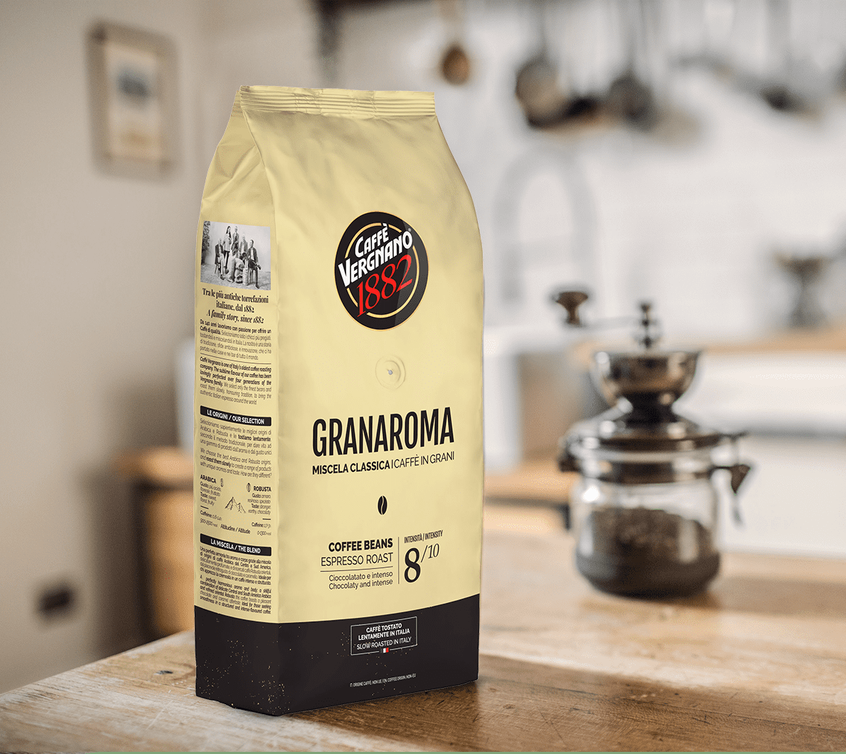 Купаж Granaroma отличается превосходным и гармоничным ароматом и балансом; сочетание нежной центрально- и южноамериканской арабики и изысканной азиатской робусты придает этому кофе приятное шоколадно-карамельное послевкусие. Идеальная смесь для тех, кто ищет плавности в крепком, структурированном и насыщенном кофе.
